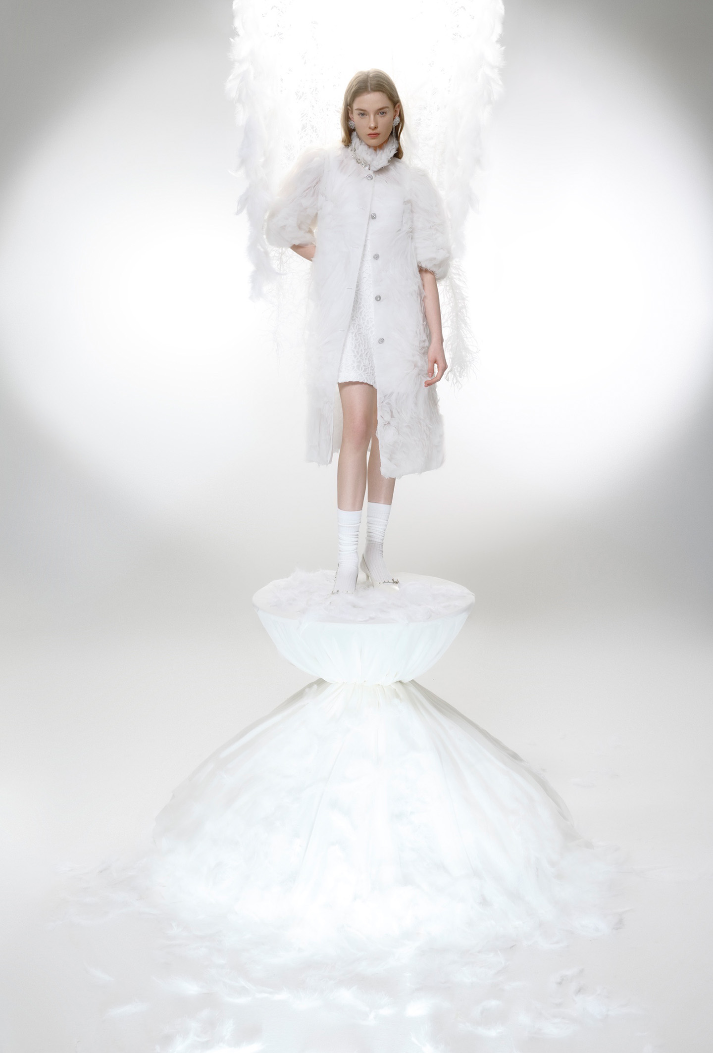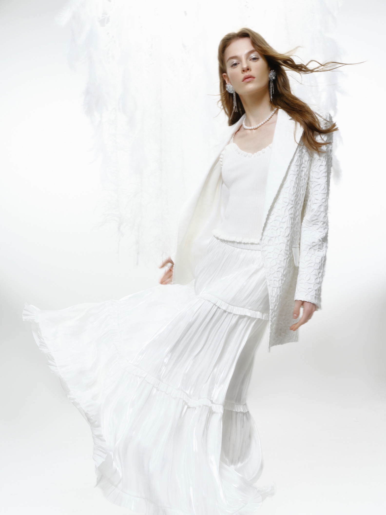 银色浮雕与网纱透叠营造轻盈梦幻氛围
