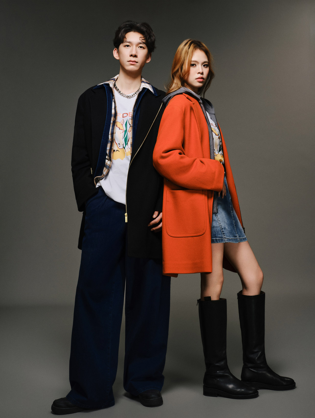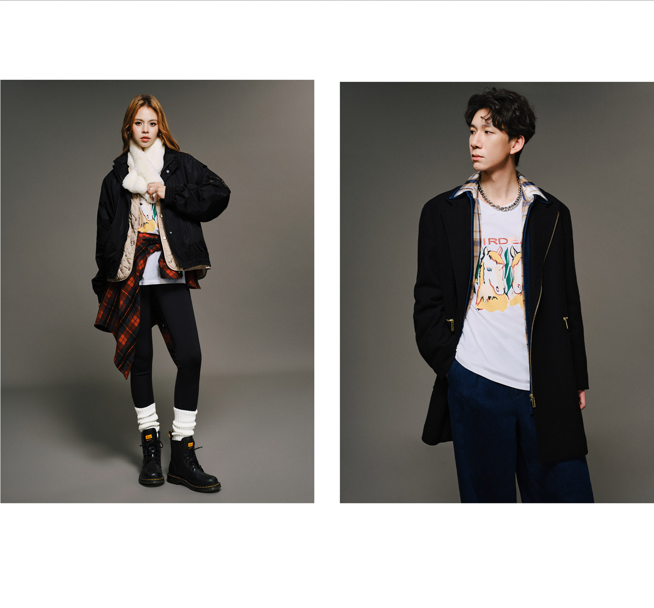 本期共享衣橱穿搭,以马年元素为细微巧思。用经典色系构建框架,借格纹元素增添层次,在率性休闲与复古之间找到平衡。以叠穿重塑层次,用色调表达态度,完成个性的风格叙事,成就自在松弛的印记。马形印花隐在卫衣与大衣的叠层间,是共享衣橱里的风格暗号。格纹领露浅层次,背后字纹漾开松弛轻缓气息。织成秋冬最舒服的状态:简约里藏着细节,温度里裹着恰好的时髦。在自然的怀抱中,释放自由不羁的活力。洋溢日系穿搭的清新与随性。这段冒险时光,服装成为他们探索世界的铠甲,简单而真挚。